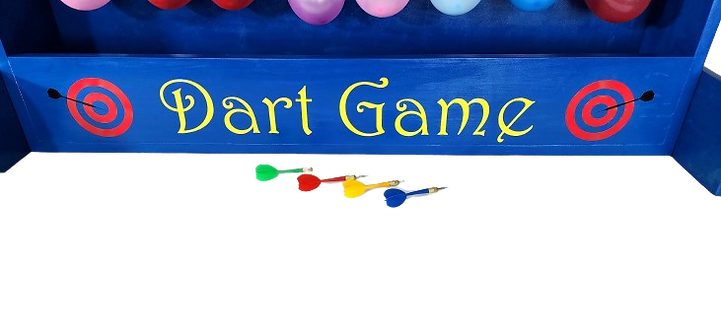 Rent our Pop-the-Balloon game for a thrilling and fun-filled activity at your event! This game measures 48 x 24 inches and comes with balloons in assorted colors, a pump, and 4 darts. Players aim to pop the balloons using the darts to reveal if they've won a prize. The game should be placed on a table (not included but available for rent). It's a great addition to any event and is sure to keep your guests entertained!