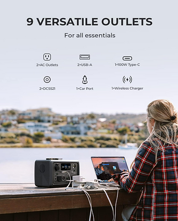 Stay powered anywhere with the Portable Power Station. Featuring a 268Wh battery and 600W AC Pure Sine Wave Inverter, this compact unit is perfect for camping, outdoor activities, and emergencies. It offers multiple charging options (wall and car) and 9 outlets for versatile device support. The LCD screen provides real-time battery and power data. Lightweight and easy to carry, this Power Station ensures you never run out of power.